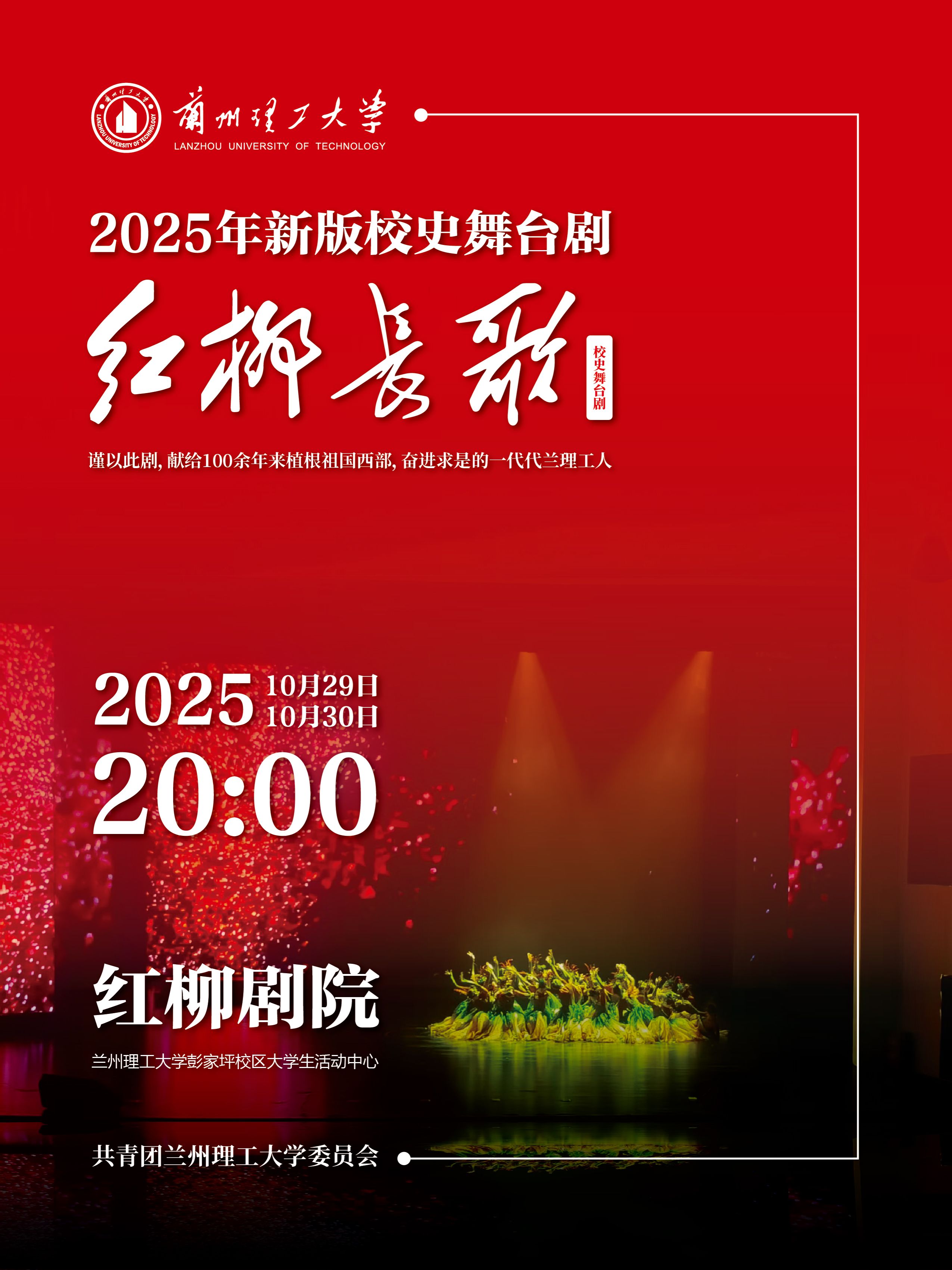 自2022年筹备启动,2023年潜心创作排练,2024年首演、复演以来,《红柳长歌》赢得广大师生校友的一致赞誉,成为传递兰理工精神内核的文化名片。为进一步激发全校师生爱校荣校的深厚情感,让百年校史中蕴含的精神养分持续浸润人心,2025年,历经全新改版与打磨后,《红柳长歌》这部承载着兰理工记忆与精神的作品,即将以全新面貌再度公演!