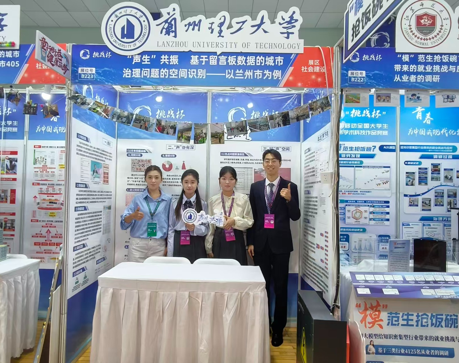 青春奋进,科创报国。10月31日至11月3日,第十九届“挑战杯”全国大学生课外学术科技作品竞赛终审决赛在南京大学举行。在本届赛事中,我校《“声生”共振 基于留言板数据的城市治理问题的空间识别——以兰州市为例》获得主体赛国家级二等奖。《“空化净舰”——自适应磁吸附船舶清洁方案》《基于仿生技术的无人机树栖模型》2件作品获得主体赛国家级三等奖,在专项赛赛道,我校学生作品《慧眼护航——基于AI视觉的实时环境感知的导盲系统》获得“人工智能+应用”专项赛三等奖;《HT-10 基于人工智能的头颈部微创手术智能辅助方案设计》获揭榜挂帅赛道优胜奖,充分展示出兰理工青年学子投身科技创新浪潮的青春风采!