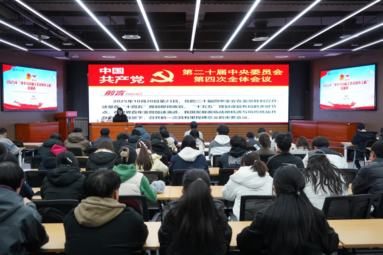学习分专题报告和集体学习两个阶段进行。在专题报告会上,学校马克思主义学院副教授高瑛以“深悟党的二十届四中全会精神实质”为题作了专题宣讲。高老师紧扣党的二十届四中全会精神核心要义,结合我国经济社会发展现实,从历次五年规划(计划)回顾、“十四五”时期我国发展取得的重大成就、“十五五”时期的历史使命等维度,通过详实数据、典型事例,对全会精神作了系统宣讲和深入阐释。
