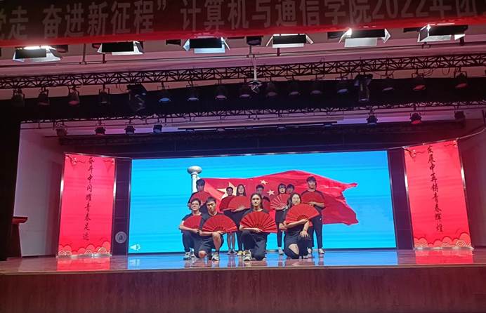 619日晚7点,为进一步加强我院共青团组织建设,增强基层团支部活力和凝聚力,“喜迎二十大,永远跟党走,奋进新征程”2022年团支部活力提升风采展在彭家坪校区大学生活动中心举行。计算机与通信学院党委书记高国礼,2021级班主任李聪、雷鹏,辅导员刘珊珊、魏占伟、张国勇出席本次活动并担任评委,2021级全体同学观看风采展演出。