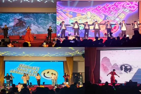 表彰环节结束后,迎新晚会精彩上演。晚会分为“红柳向阳,青春启航”、“材坚料实,砥砺深耕”、“聚力一流,时代担当”三个篇章。开场舞《燃情东北》瞬间点燃全场热情;辅导员深情献唱《春风十里》,引来阵阵掌声;舞蹈《宣生瑶光》《风起青春序》彰显青春活力;小品《时间都去哪了》幽默诙谐引发共鸣;武术表演刚劲有力,彰显传统文化魅力;国际教育学院带来的舞蹈《THAILAND》异域风情浓郁;歌曲《我和我的祖国》深情优美,抒发家国情怀。最后晚会在歌舞《相亲相爱》的温馨氛围中圆满落幕。
