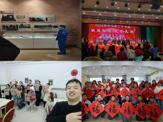 材料学子积极用青春的创造力弘扬优秀传统文化。在2026丙午马年钟声即将敲响之际,金属材料工程2023级学生郑崧来到新疆第二十七团文化中心,作为核心演员参与了“兵团儿女”迎新春文艺晚会的筹备与演出,从开场舞《骏马奔腾》的排练打磨,到情景短剧中饰演扎根团场的青年干部,这段跨越时空的艺术淬炼,让兵团精神在青年一代心中生根发芽。材料成型及控制专业2024级学生雷靖娴回到甘肃静宁,走访当地文化遗址,参与了团县委举办的“传红色精神·讲道德故事·倡文明新风”活动,用镜头记录书法爱好者为居民写春联、送“福”字的场景,并通过新媒体传播这一民俗文化。青年们回到家乡参与各类非物质文化遗产传承与民俗节庆活动,通过实地考察与新媒体手段,在多元的文化实践中讲好中国故事。