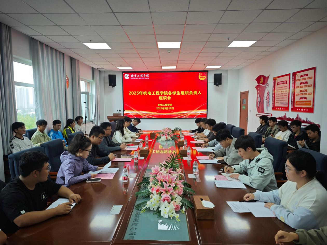 为进一步加强学生思想政治引领,规范各学生组织管理,精准服务青年学生成长成才,9月18日,机电工程学院于机电大楼组织召开2025年学生组织负责人座谈会。学院党委副书记张钦、学生工作办公室刘阳老师、张元文老师及各学生组织代表共计30余人参会。会议由学院团委老师卢炳琪主持。