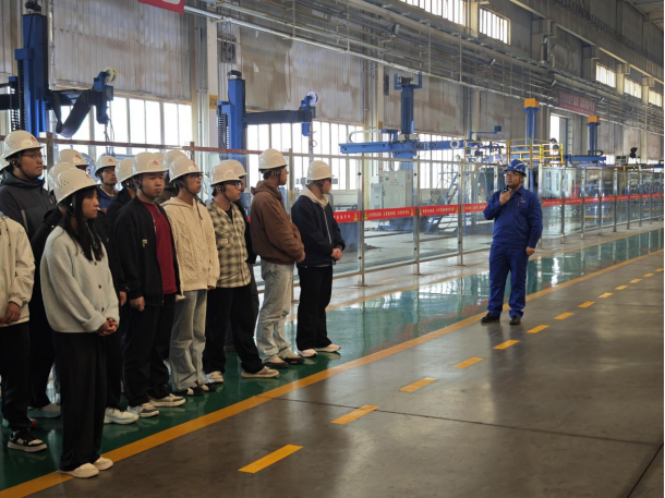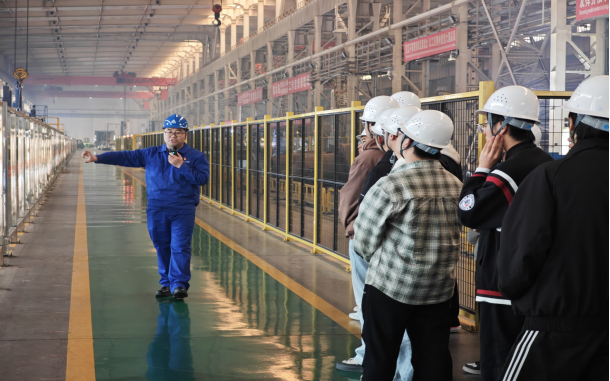 同学们首先走进兰石集团企业展示中心,了解这家“中国石化机械摇篮”的发展历程与创新发展脉络。从传统能源装备的深耕细作,到新能源高端设备的研发突破,从核心技术的持续攻关,到企业智能化、数字化的转型升级,兰石集团在高端装备制造领域的深厚积淀与前沿探索,让同学们清晰把握了行业发展趋势,更深刻体会到“工匠精神”与“创新精神”在工业发展中的核心意义,为青年学子树立正确的职业观、就业观奠定了坚实基础。