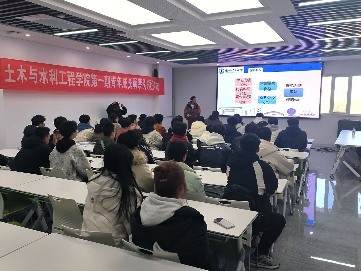 为发挥优秀学子的榜样引领作用,11月18日,土木与水利工程学院“以朋辈之炬 照成长之路”首期青年成长沙龙在彭家坪校区大学生活动中心301成功举办。本次邀请四位保研学子与低年级同学面对面交流,分享保研心得、学业方法与成长感悟。