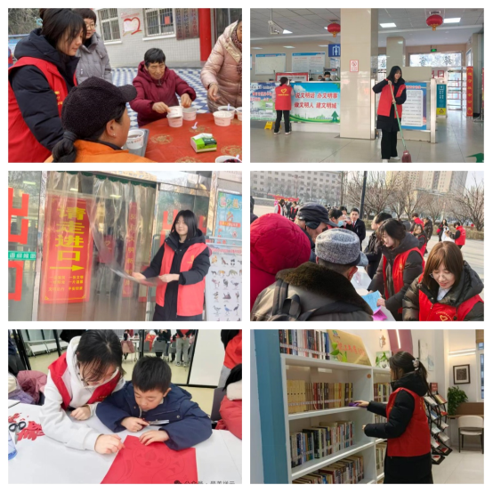 文化场馆是滋养心灵的土壤。2025级工商管理专业杜洋洋同学在定西市图书馆整理图书、服务读者,体会到了基层文化工作者的坚守。2025级会计专业唐佳怡同学在扶风县图书馆、汽车站等多个点位提供志愿服务,累计服务超百小时,在图书整理、环境整治、春运服务等不同岗位的切换中,锻炼了出色的适应能力和问题解决能力。2025级国际经贸专业王妍如同学在照看孩子的志愿活动中,学会了换位思考与耐心沟通,用行动传递了温暖。这些实践让“奉献、友爱、互助、进步”的志愿精神深入人心。