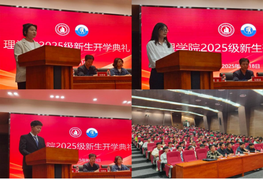 大会在庄严的国歌声中拉开帷幕。本科新生代表陈嘉亮、硕士研究生新生代表何鑫雨先后发言,表达了对大学生活的憧憬与决心,承诺将勤奋学习、勇于探索,不负时代、不负韶华。在校生代表刘子茹结合自身经历,鼓励新同学们积极适应大学生活,敢于挑战、全面发展。理学院党委书记穆龙代表学院全体师生对2025级新生的到来表示热烈欢迎,并提出三点希望:一是坚定理想信念,锤炼意志品格,做有信仰、有担当的时代新人;二是勤学善思明辨,练就过硬本领,做有智慧、有才干的时代新人;三是勇于创新创造,敢于突破自我,做有活力、有作为的时代新人。穆龙强调,理学院将秉承“明理精学、立德笃行”的院训,为同学们成长成才提供坚实保障。