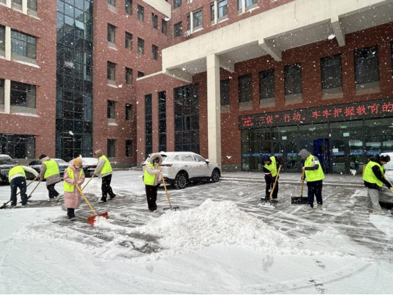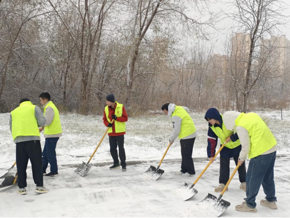 12月12日上午,一场瑞雪为冬日校园披上银装,却也为师生出行带来不便。为保障校园道路畅通及师生安全,理学院组织学生开展扫雪活动,将劳动教育融入校园实践活动。
