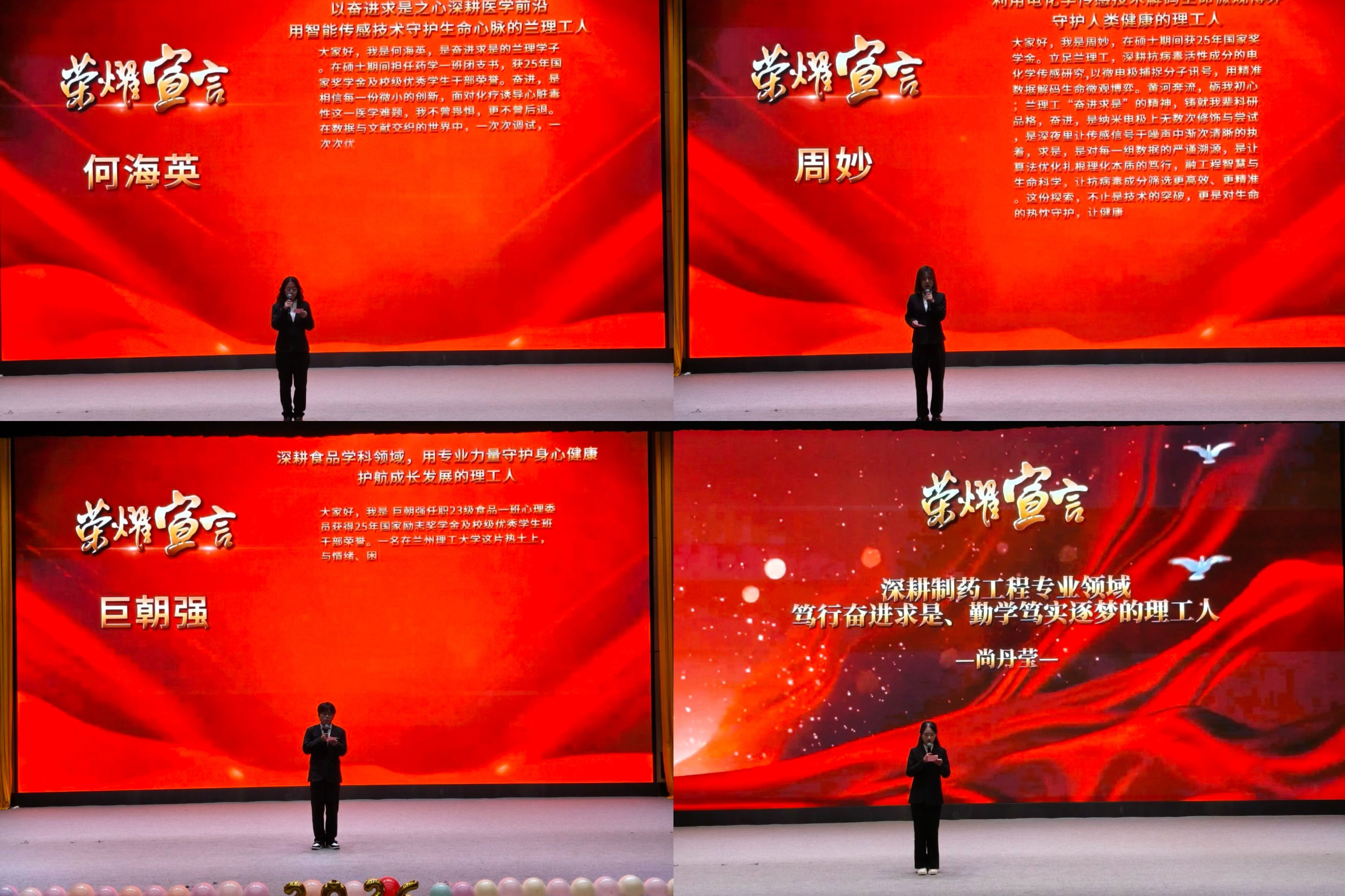 表彰大会在庄严的国歌声中拉开帷幕。学院对过去一学年在学风建设、科研创新、社会实践等方面表现优异的先进集体与个人进行了隆重表彰,充分体现了学院对勤学笃行精神的肯定与鼓励。作为本次表彰大会的亮点,随后登场的“荣耀宣言”由四位优秀学子依次登台生动分享成长足迹与心路历程。他们真诚而深刻的讲述,生动展现了生命学子追求卓越、全面发展的风采,为全体新生树立了鲜活榜样。