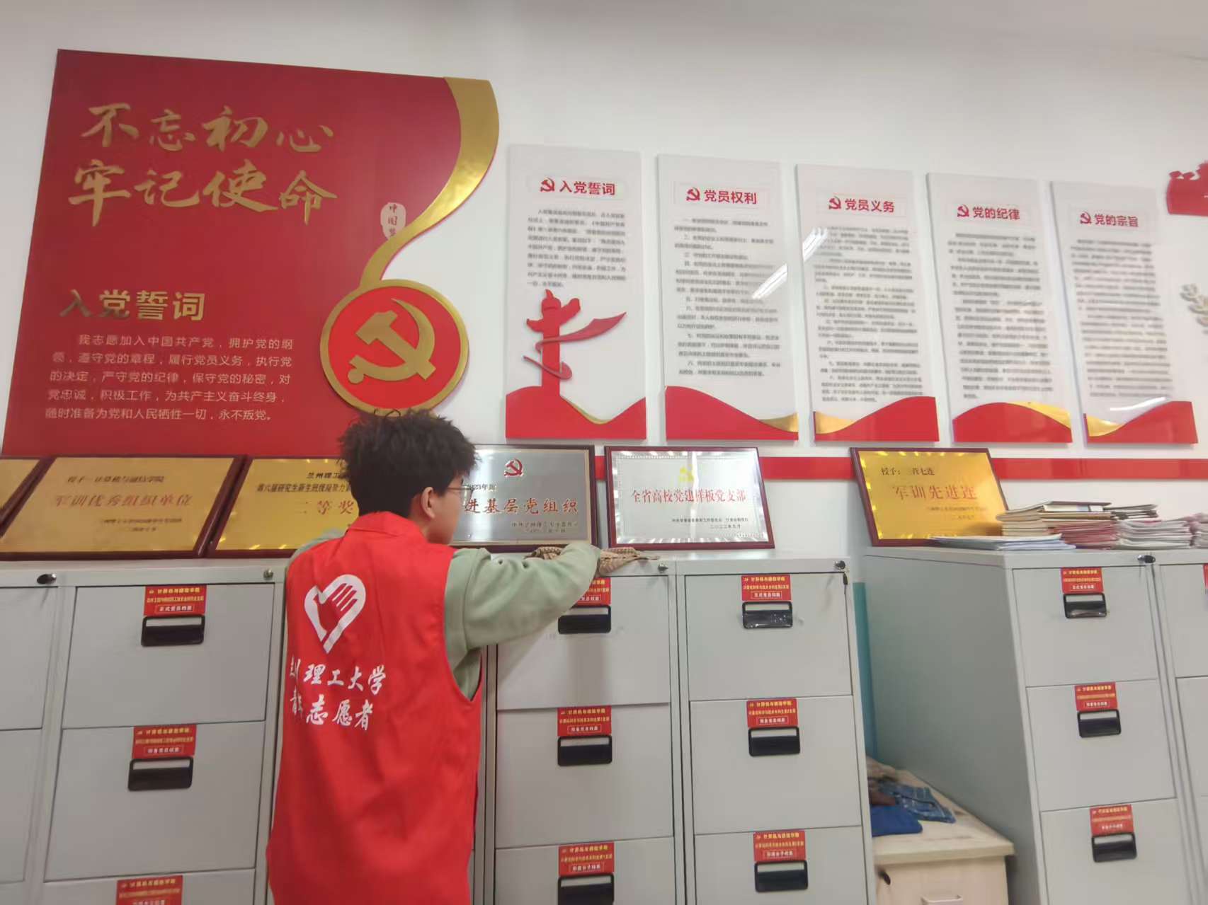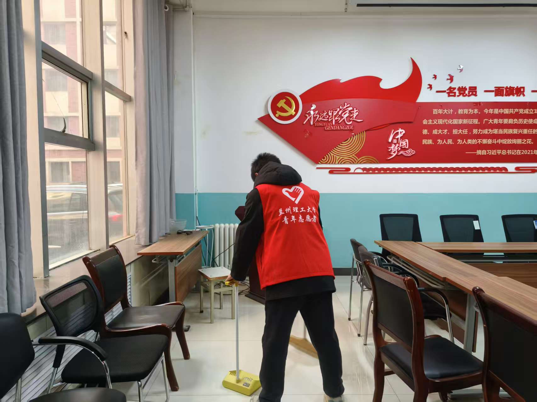 校内服务之外,志愿者们以实际劳动践行雷锋精神。雷锋日当天,学院组织志愿者走进舒卷楼,对会议室、地下室、消防通道等公共区域进行全面清扫与整理,切实营造出整洁有序的办公与学习环境。
