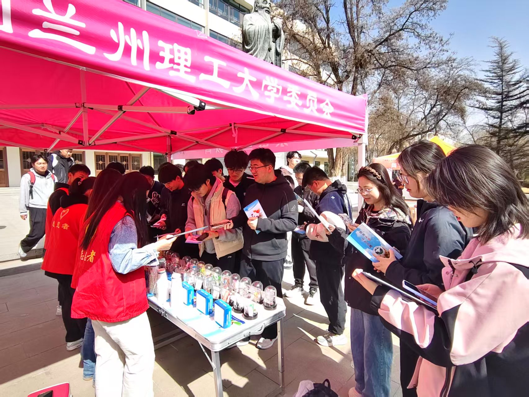 3月5日,学院在兰工坪校区设立志愿服务点,同步开展禁毒宣传与计算机义务维修两项活动。在禁毒宣传教育展位,志愿者们借助毒品仿真模具、宣传折页和现场讲解,向师生普及禁毒法律法规及防毒拒毒知识。互动抽奖环节吸引了大量同学驻足参与,现场气氛热烈。与此同时,在计算机义务维修点位,学院社团成员发挥专业特长,现场为师生提供电脑清灰、系统维护、软件安装等免费服务,帮助解决日常电脑使用中的实际难题。