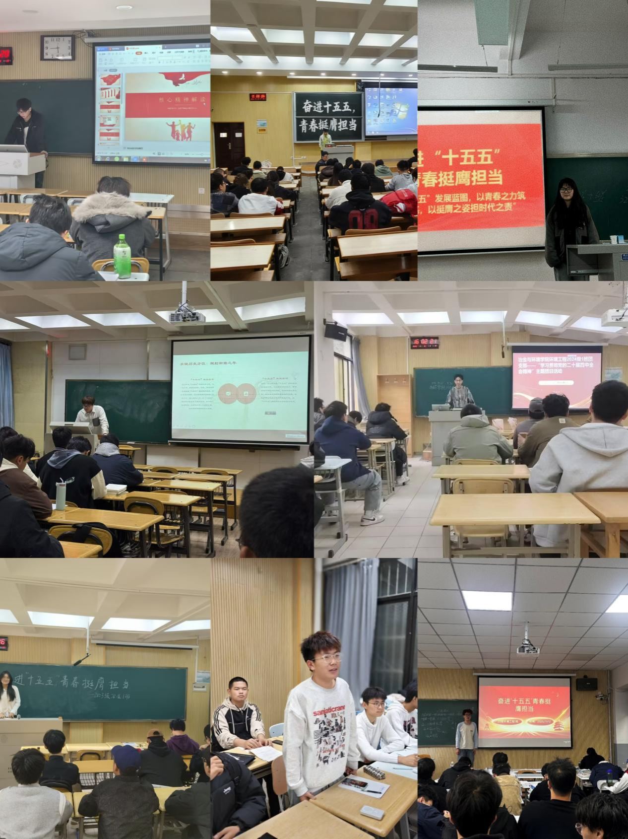 为深入学习贯彻党的二十届四中全会精神,引导广大团员青年深刻把握“十五五”时期的战略部署与时代使命,近期,冶金与环境学院各团支部围绕“奋进‘十五五’青春挺膺担当”主题,依托“三会两制一课”制度机制,用好“青年大学习”网上主题团课,通过讲座报告、座谈交流、学习研讨、实践体验等多种形式,扎实开展了一系列主题团日活动,取得了良好成效。